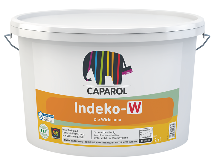 Hoogwaardige, schrobvaste muurverf voor muren en plafonds. Deze verf is speciale muurverf in vochtige ruimten zoals voor bijvoorbeeld: brouwerijen, melkfabrieken, slachterijen en conservenfabrieken. Ook is deze verf geschikt en ter bevordering van de hygiëne in badkamers en keukens. Caparol Indeko W is verkrijgbaar in verschillende kleuren, lees hieronder hoe u de juiste kleur bestelt.