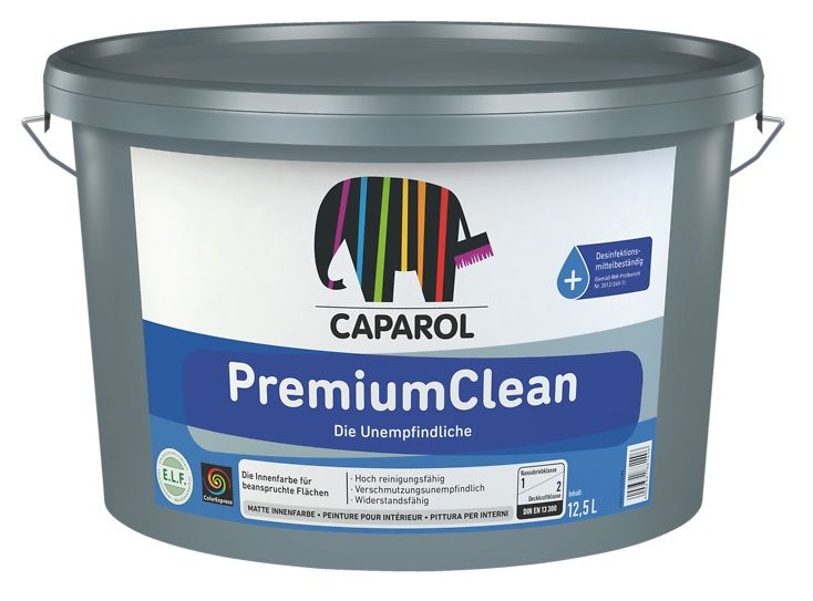 Caparol Premium Clean is een geschikte verf voor muren en plafonds die veelvuldig gereinigd moeten worden. Ondanks het matte oppervlak is de verflaag uitstekend te reinigen. Premium Clean is bestand tegen in water oplosbare desinfecteermiddelen en daardoor ook zeer geschikt voor toepassing in gezondheidscentra, openbare ruimten en horeca. De glansgraad van dit product is zeer mat. Afhankelijk van de kijkhoek kan het oppervlak zijdemat overkomen. Caparol Premium Clean is verkrijgbaar in veel verschillende kleuren, lees hieronder hoe u de juiste kleur bestelt.