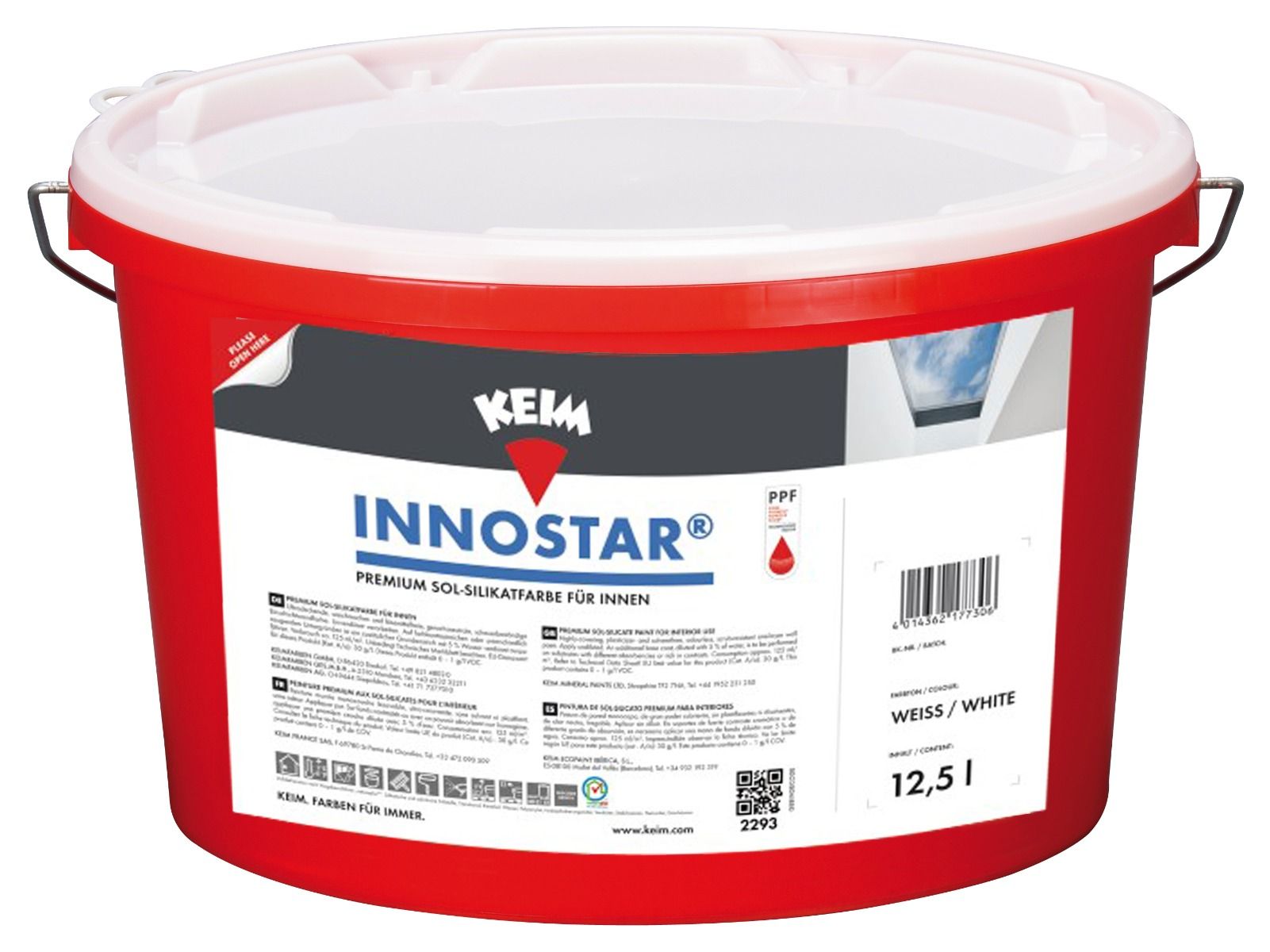 KEIM Innostar beschikt over een zeer hoge dekkracht in combinatie met een zeer hoge witgraad. KEIM lnnostar is geschikt voor alle gebruikelijke binnenwanden en plafonds, zowel voor nieuwe ondergronden als bestaande ondergronden in woning- en utiliteitsbouw (ook goed vastzittende organische verflagen).