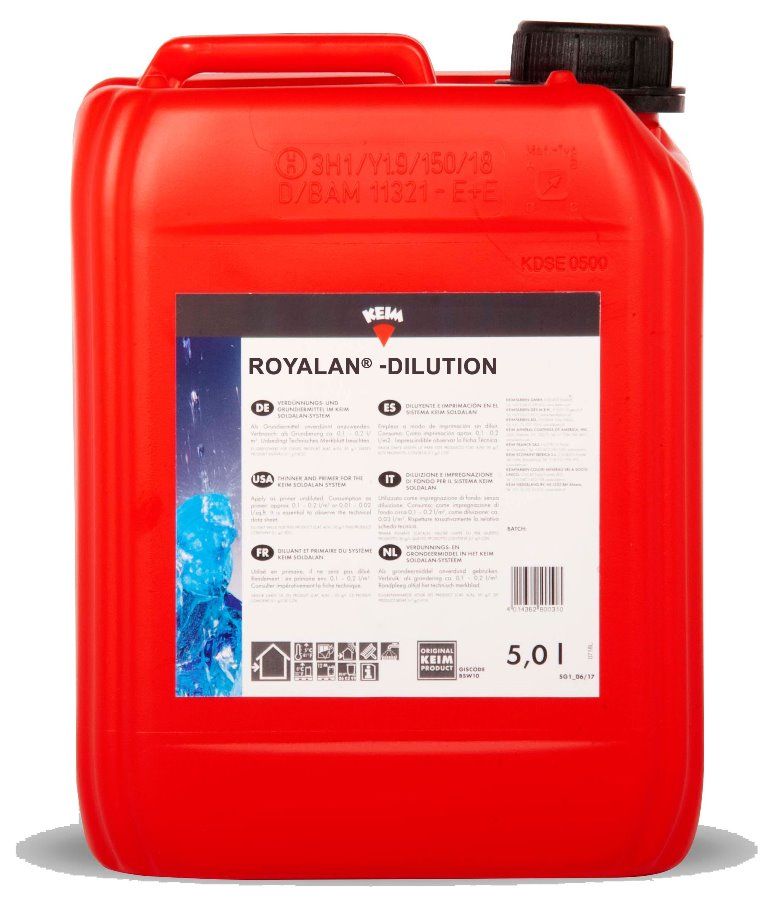 KEIM Royalan-Verdunning is de verdunning en grondering voor het KEIM Royalan systeem. Het product is op basis van kali waterglas, puur acrylaat en natuurlijke toevoegingen.