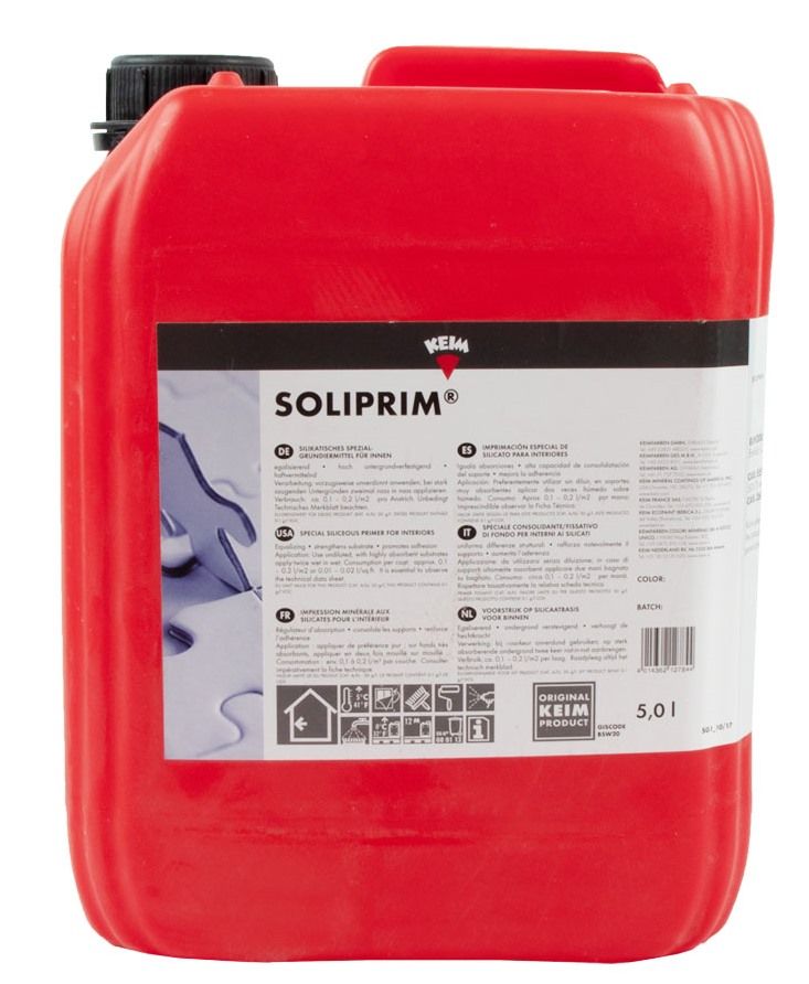 KEIM Soliprim is een speciaal silicaat gronderingsmiddel voor binnen op basis van hydrosol en kiezelsol.